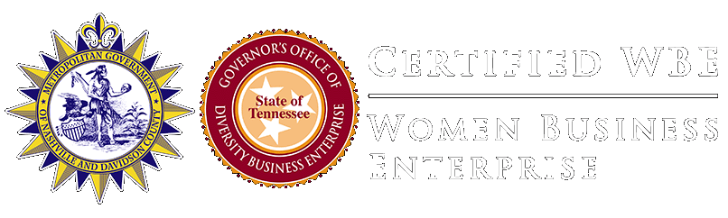 Woman Business Enterprise certified through Nashville Metro and the Governor’s Office of Diversity Business Enterprise.